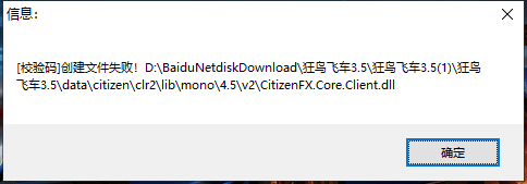 链接里的狂鸟飞车3.5是修复校验码创建文件失败
